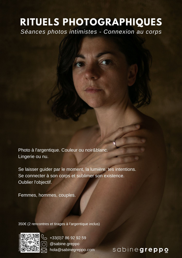 Mes rituels photographiques invitent à un voyage intime, à travers le corps et les émotions. Travailler à l'argentique me permet de saisir votre vérité, là où la patience du procédé rend le moment sacré. Laissez-vous simplement guider par le moment, la lumière, et vos intentions profondes pour explorer votre présence et votre puissance. Le temps d'une séance, je vous invite à vous connecter à votre corps dans sa forme la plus naturelle, et à sublimer son existence au-delà des jugements. Que vous veniez seule ou en couple, ce rituel est un acte symbolique, une rencontre essentielle avec soi.